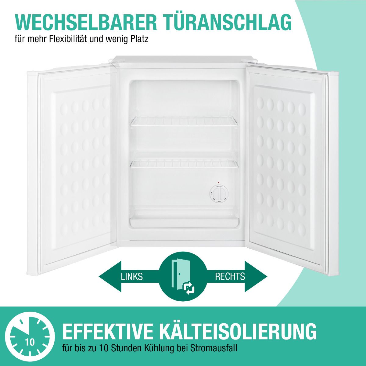 - Vielseitigkeit: Der wechselbare Türanschlag und die justierbaren Standfüße machen die Gefrierbox anpassungsfähig an Ihre individuellen Bedürfnisse und sie passt perfekt in jeden Raum