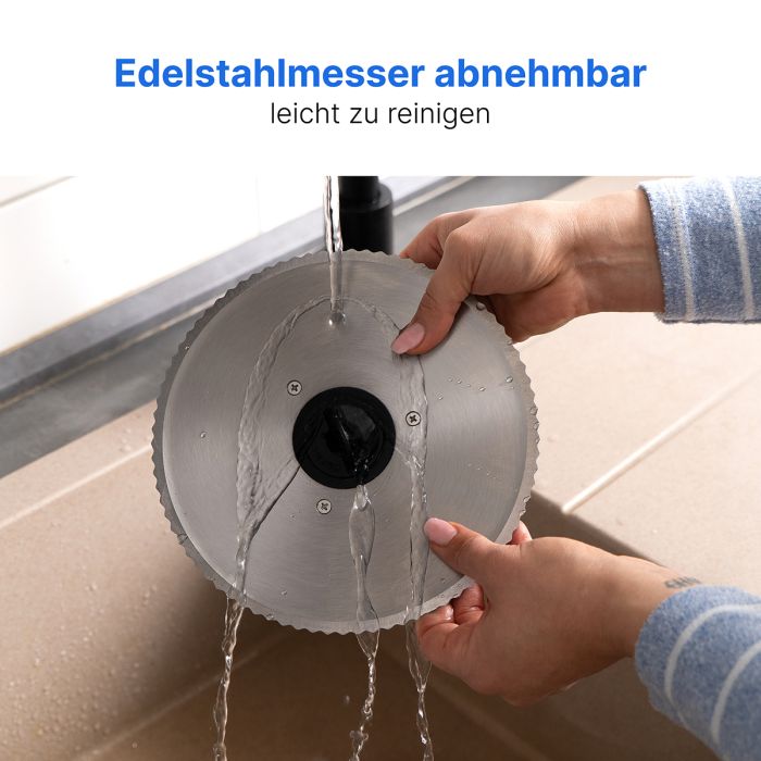 - Grosses Edelstahlmesser (Ø 190 mm), rostfrei