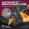- Schnell & effizient – starke Heizleistung für gleichmässig gebräunte Sandwiches.