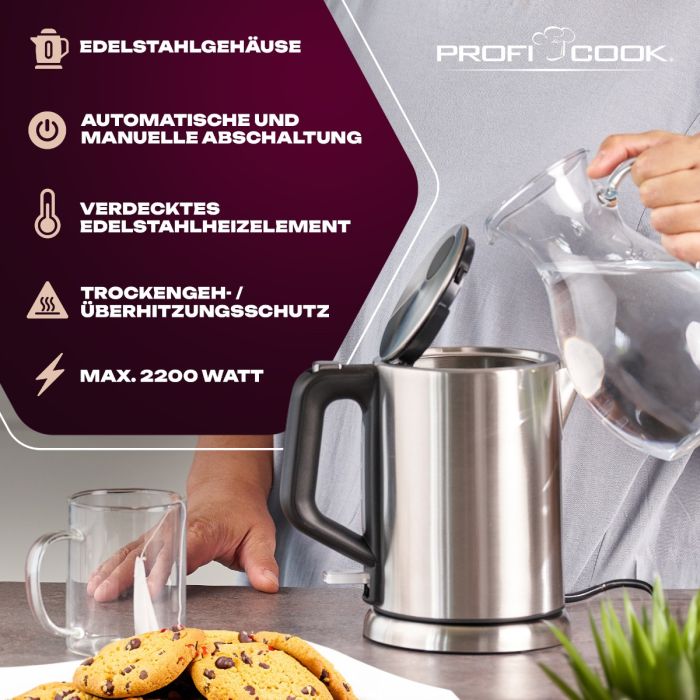 Tauchen Sie in die Welt des puren Genusses und erleben Sie mit dem Wasserkocher von ProfiCook einen neuen Standard an Komfort und Qualität.