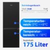 Die Temperaturbereiche von 0°C bis +8°C im Kühlteil und bis -18°C im Gefrierteil gewährleisten eine optimale Lebensmittelaufbewahrung. Besonders praktisch: der wechselbare Türanschlag und das leise Betriebsgeräusch.