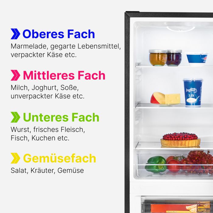 - Viel Stauraum – grosszügige Kühl- und Gefrierfächer für frische Lebensmittel und Vorräte.