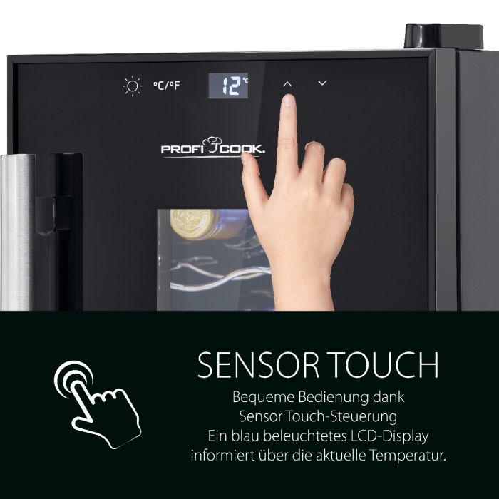 Die thermoelektrische Kühlung sorgt für eine präzise und gleichmässige Temperaturkontrolle zwischen +11°C und +18°C, während das geräuscharme Anti-Vibrationssystem Ihren Wein vor Störungen bewahrt und eine ideale Reifung ermöglicht. Die Sensor Touch-Steuerung und das blau beleuchtete LCD-Display bieten höchsten Bedienkomfort und ermöglichen eine einfache elektronische Temperatursteuerung.