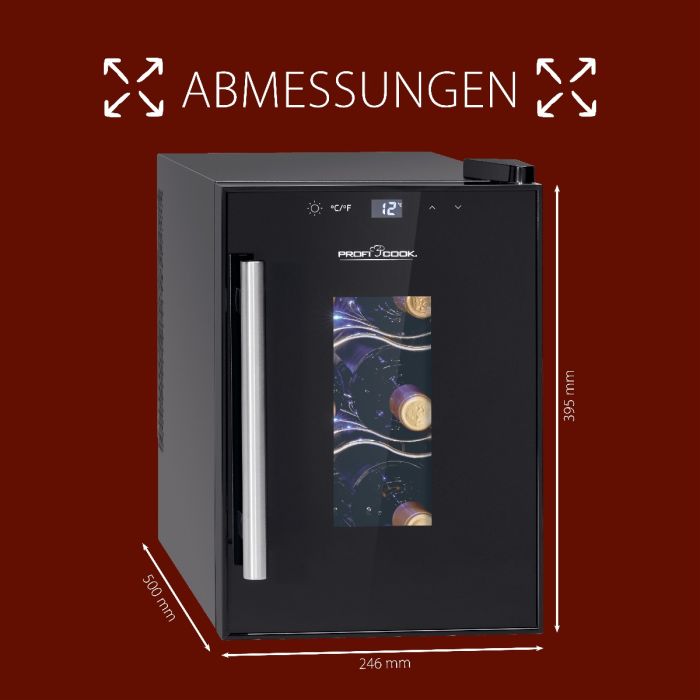 Erleben Sie die Faszination perfekt gekühlter Weine mit unserem Weinkühlschrank, der Ihre edlen Tropfen in einem ansprechenden Ambiente präsentiert. Mit einer Kapazität von 6 Flaschen à 0,75 Liter und einem Nutzinhalt von 17 Litern bietet dieser Weinkühlschrank ausreichend Platz, um Ihre Weinschätze angemessen zu lagern.